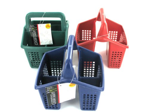 This four section cutlery caddy is great for parties, picnics or even daily use. It has a handle for easy carrying and is just the right size to set on a table. Silverware or plastic ware sets fit perfectly in each compartment. Item is stackable and it measures 5 5/8" x 4 5/8" x 6".